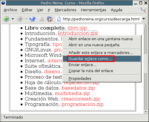 En este ejemplo, vamos a descargar el archivo introduccion.zip,