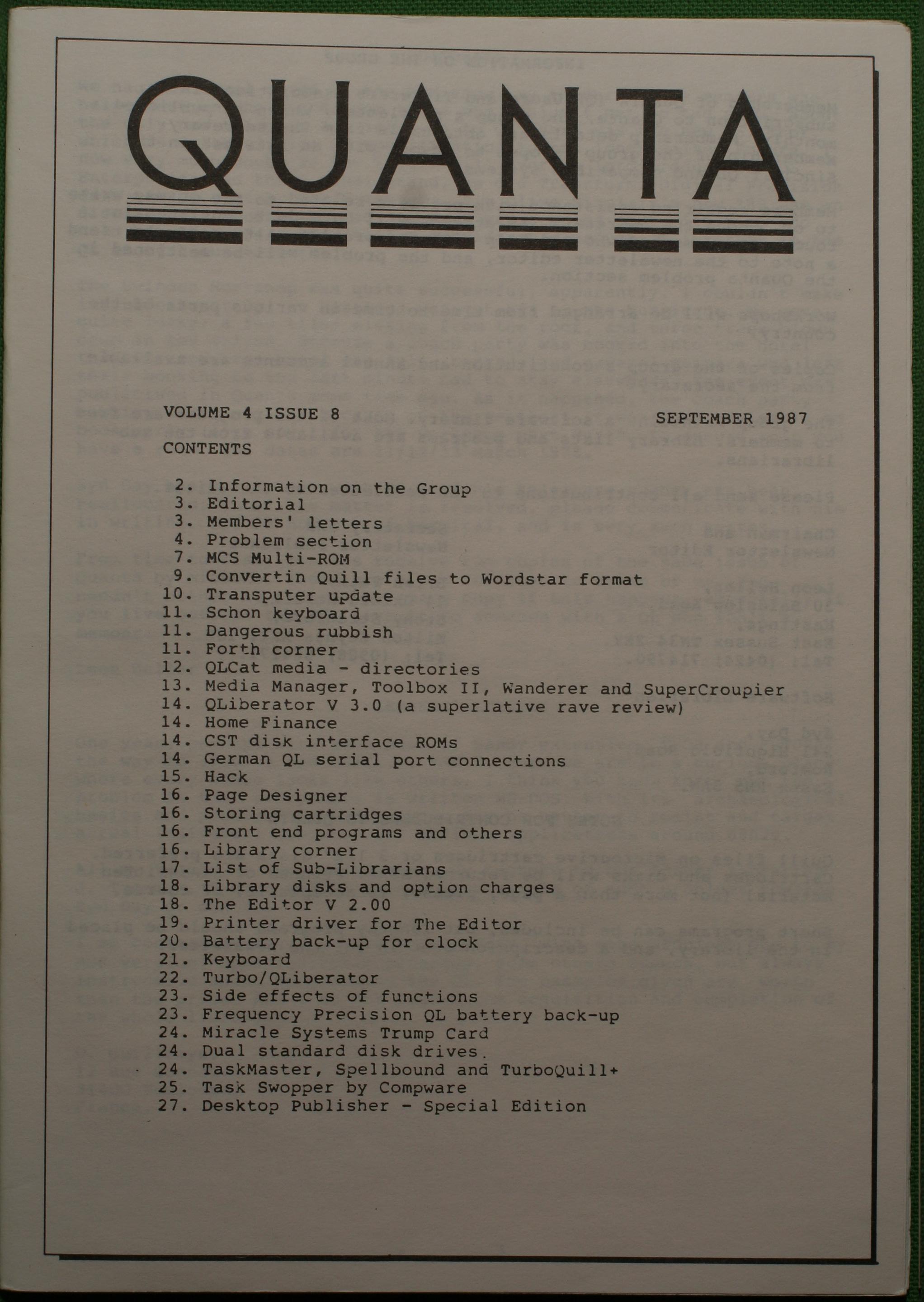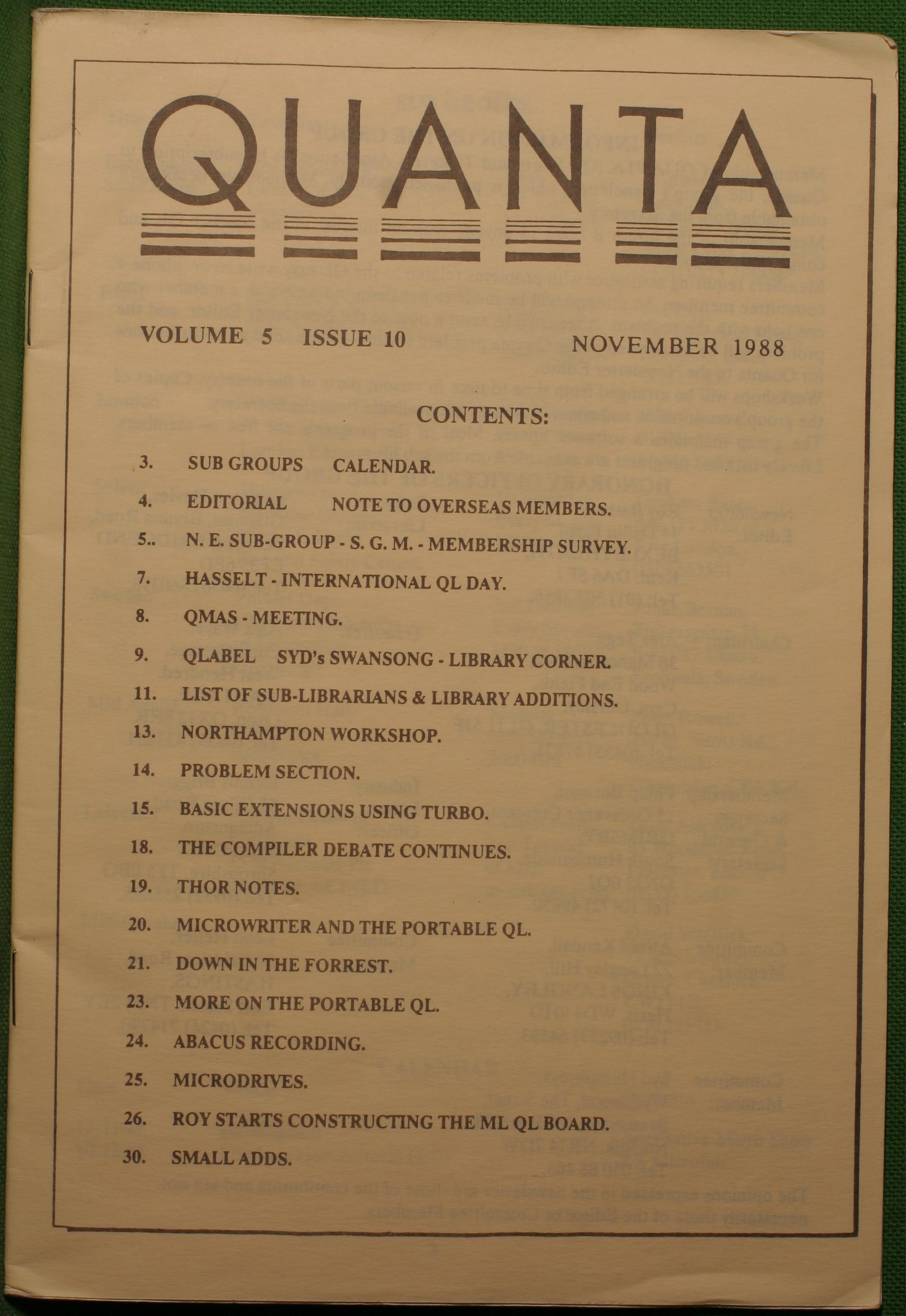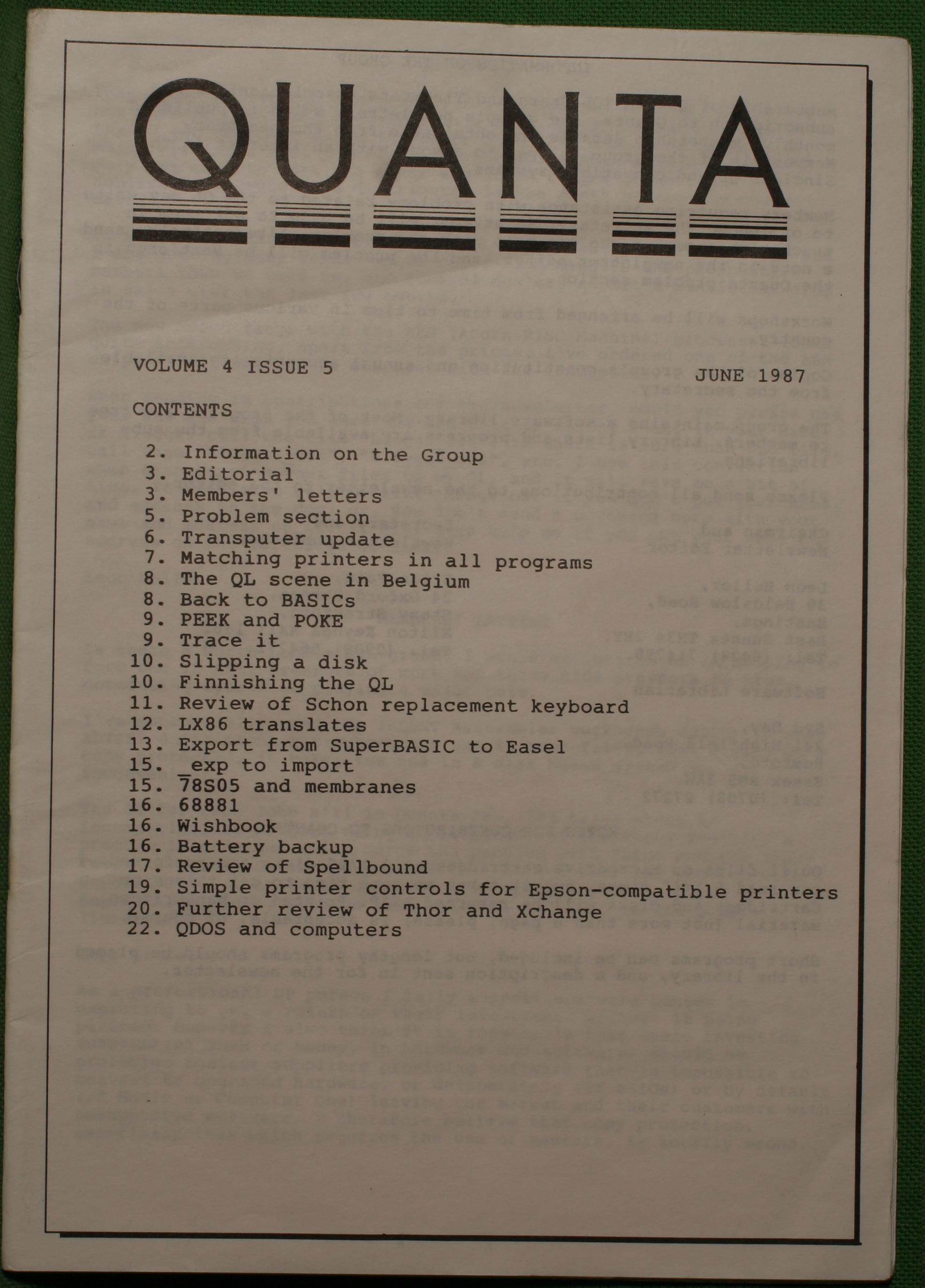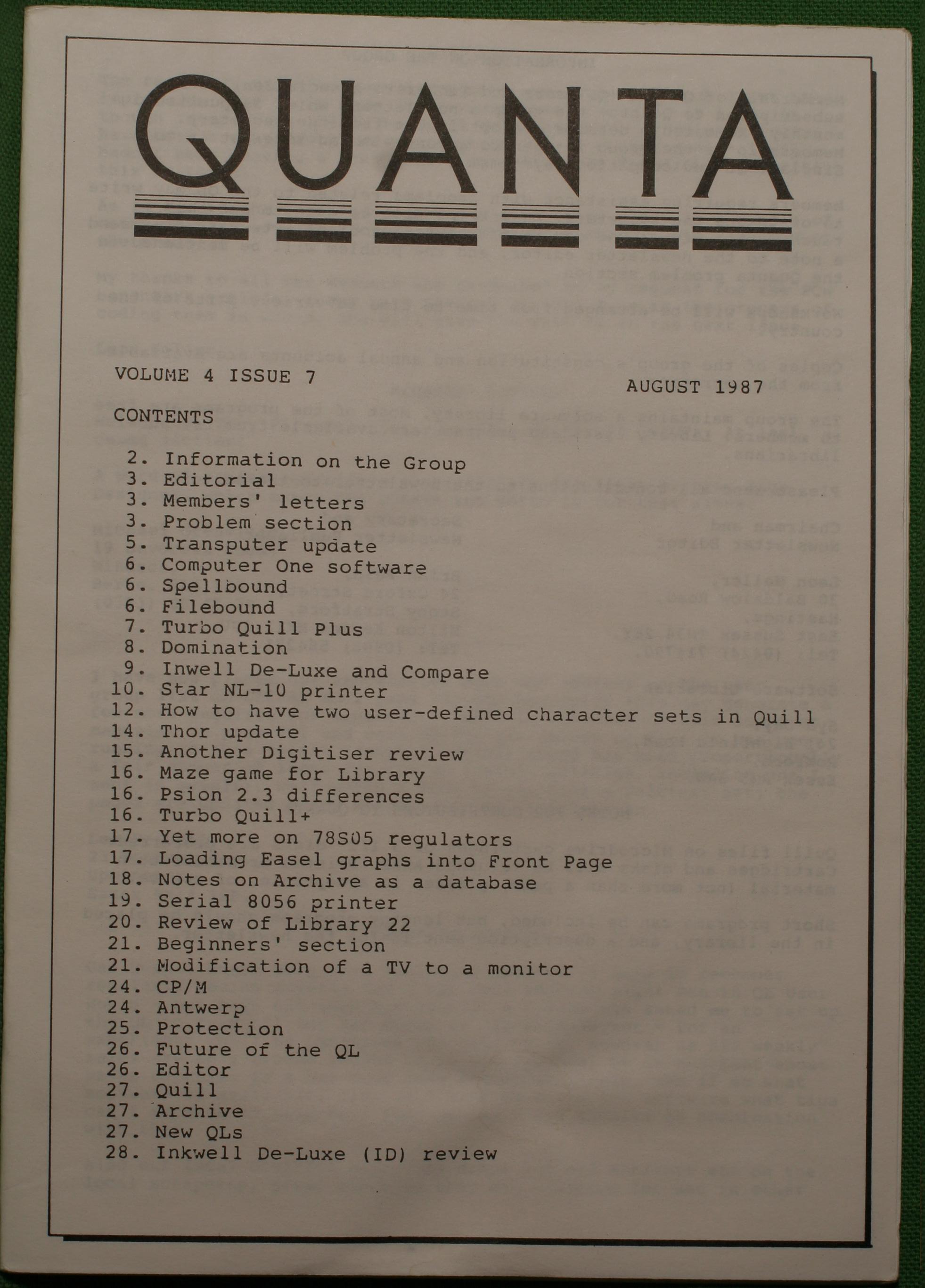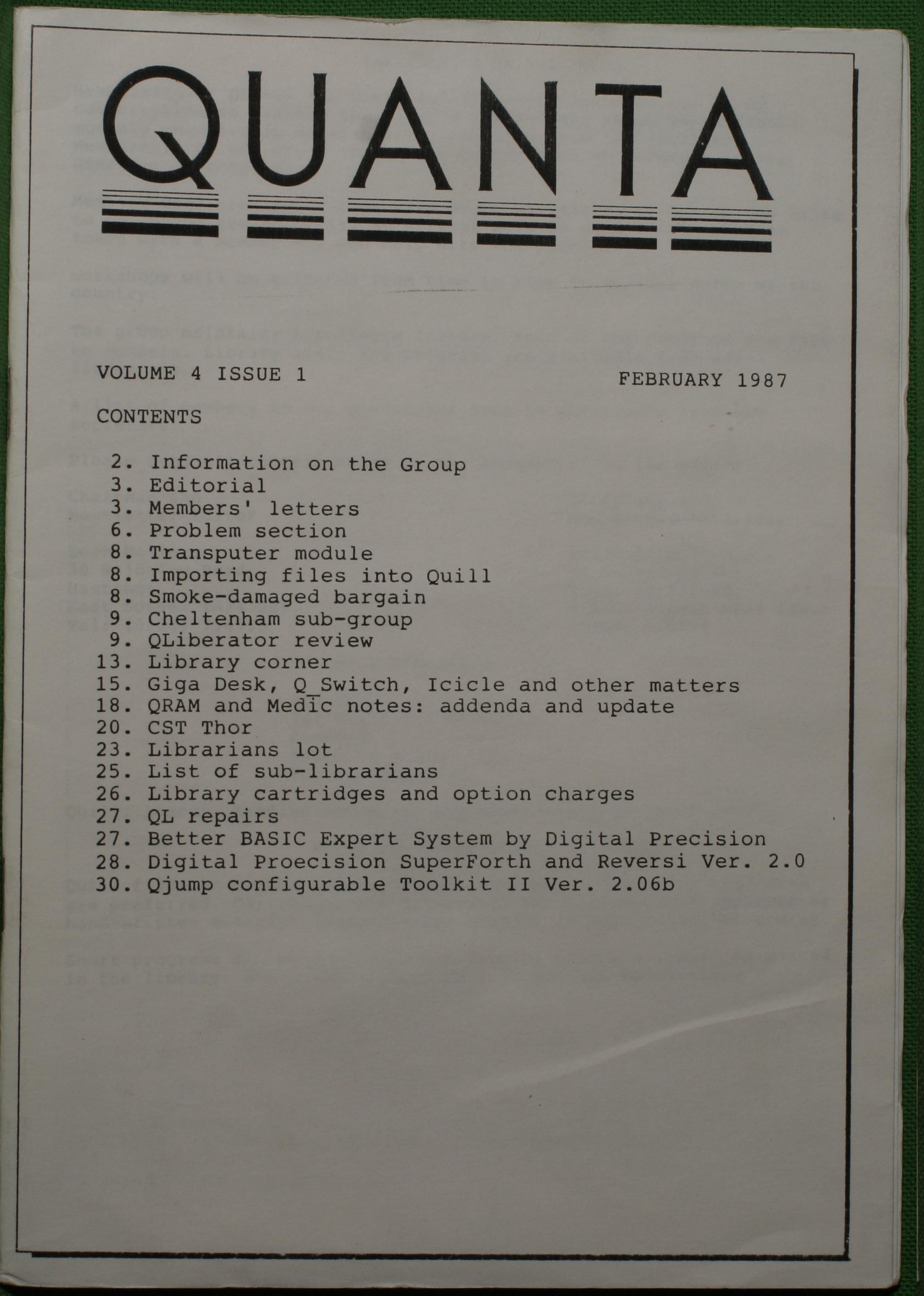 Quanta es el club de usuarios del ordenador Sinclair QL más importante del mundo. Se fundó más o menos al mismo tiempo que se comercializaba el ordenador. Tardé varios años en dicidirme en hacerme socio, pero cuando lo hice pedí todos los números atrasados de la revista. Dejé de ser socio cuando vi que mis pricipales intereses informáticos ya se habían desplazado hacia otros derroteros.