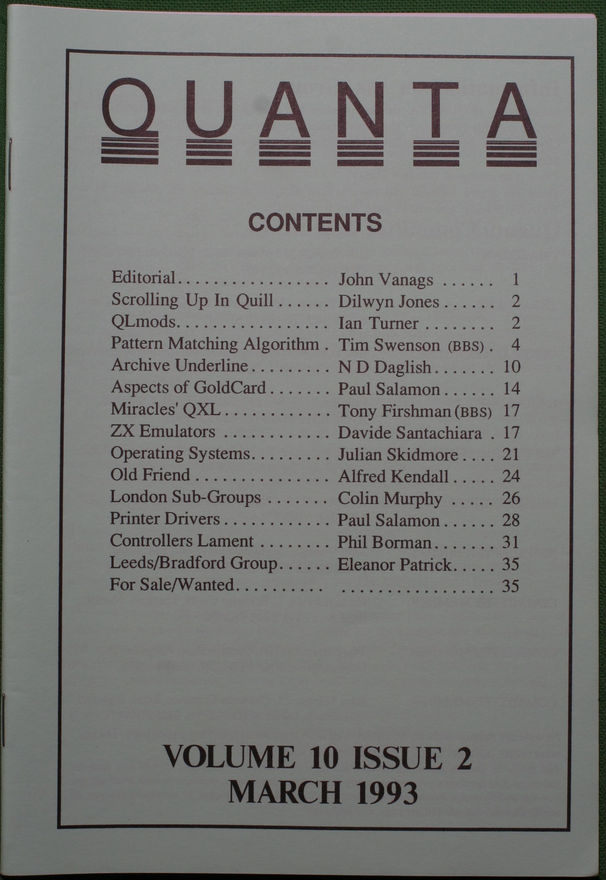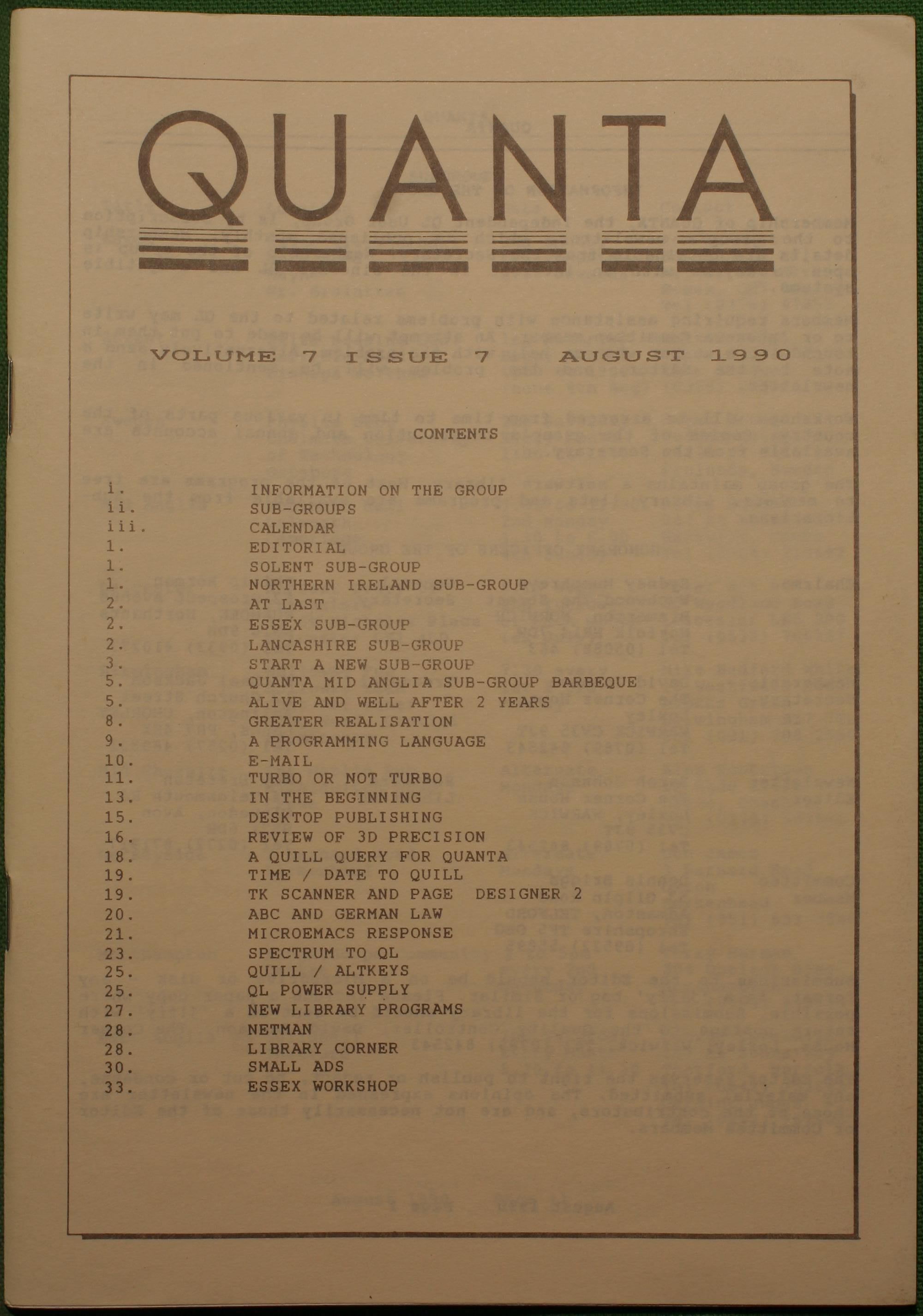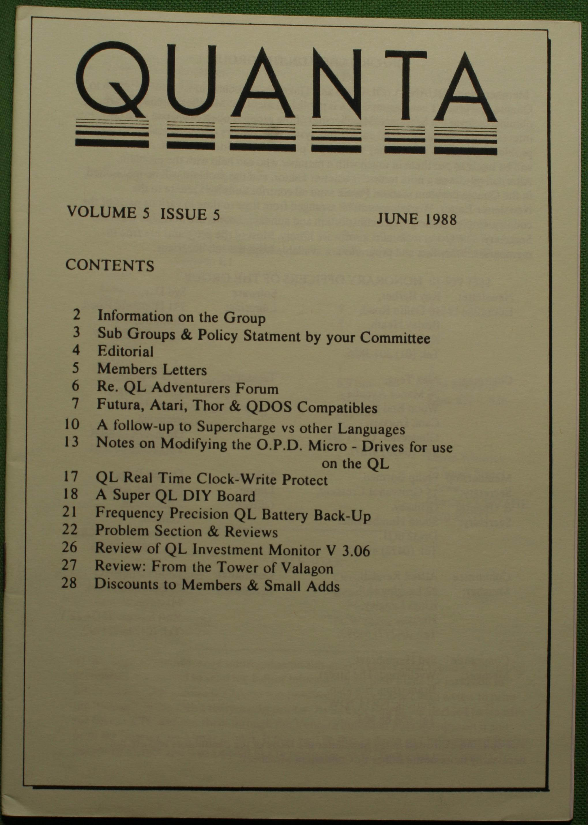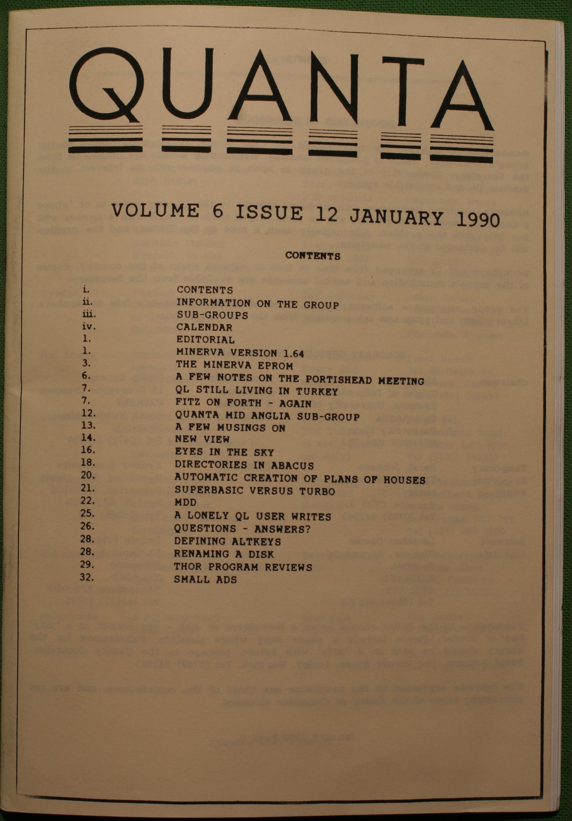 Quanta es el club de usuarios del ordenador Sinclair QL más importante del mundo. Se fundó más o menos al mismo tiempo que se comercializaba el ordenador. Tardé varios años en dicidirme en hacerme socio, pero cuando lo hice pedí todos los números atrasados de la revista. Dejé de ser socio cuando vi que mis pricipales intereses informáticos ya se habían desplazado hacia otros derroteros.