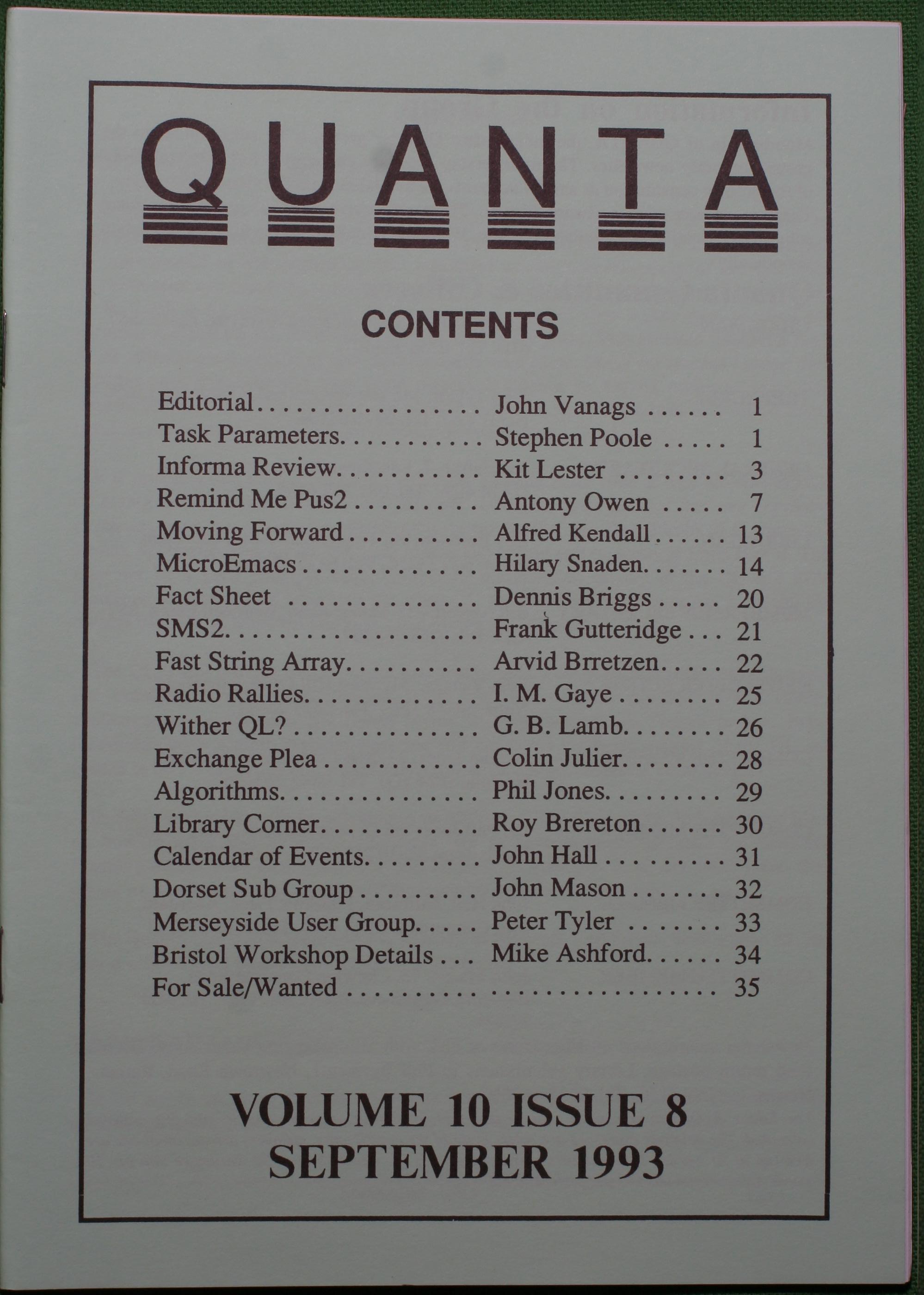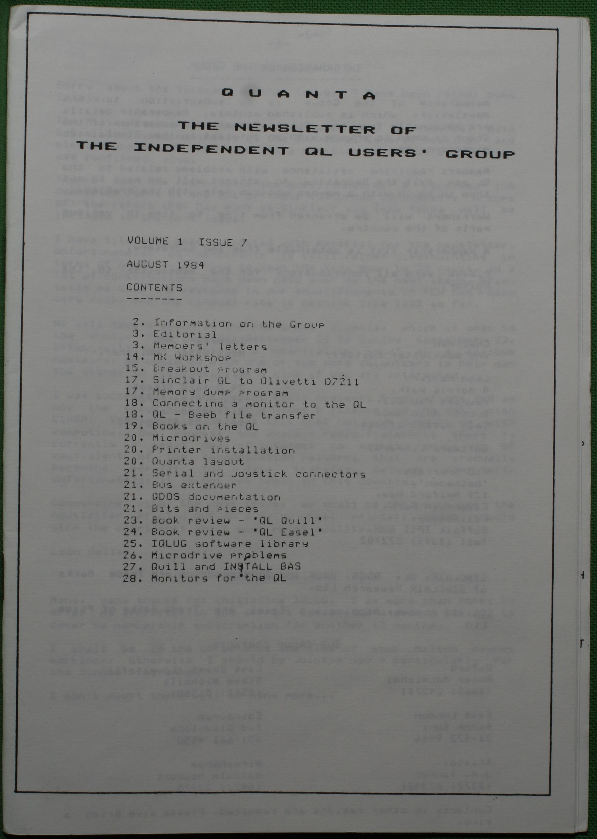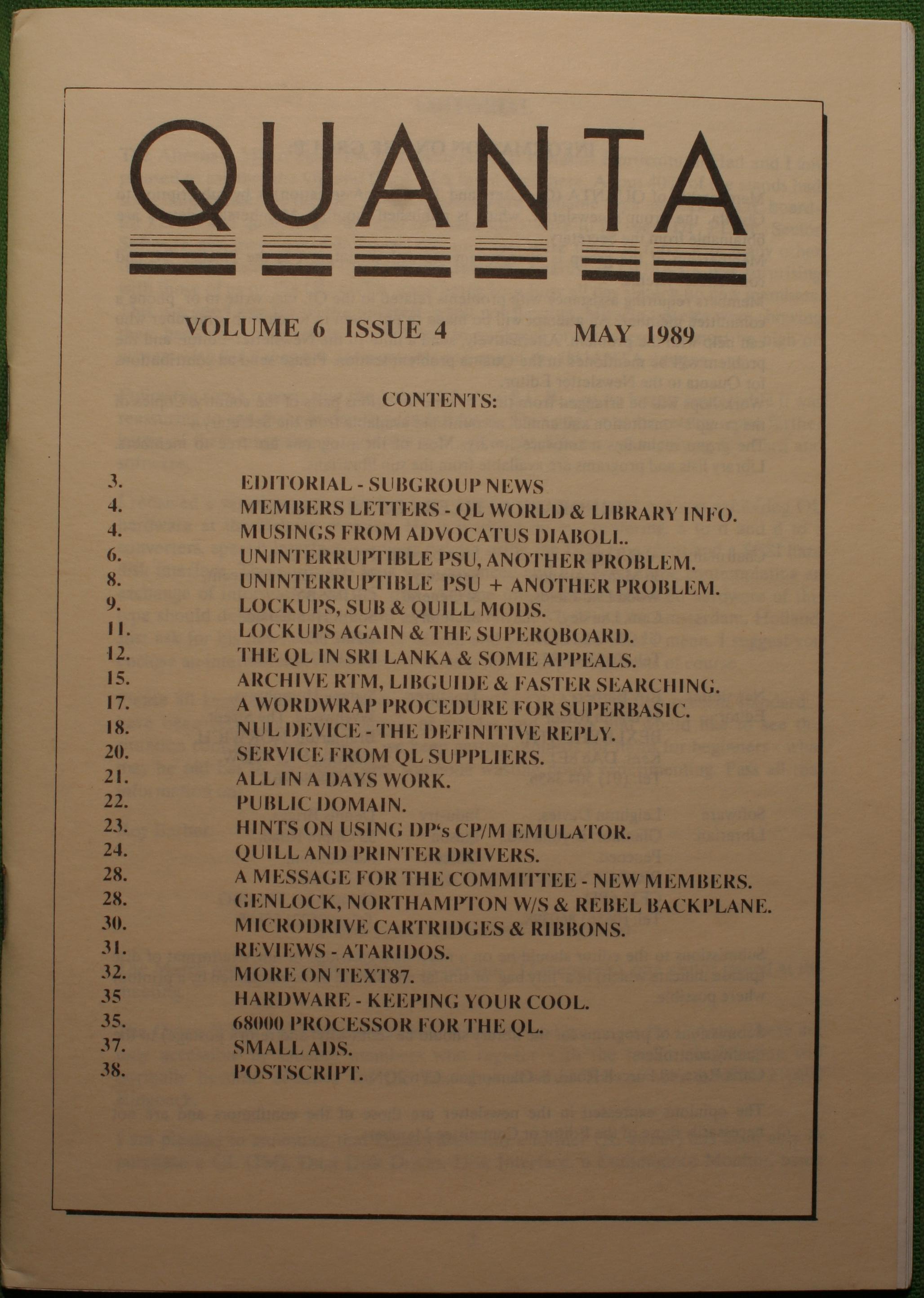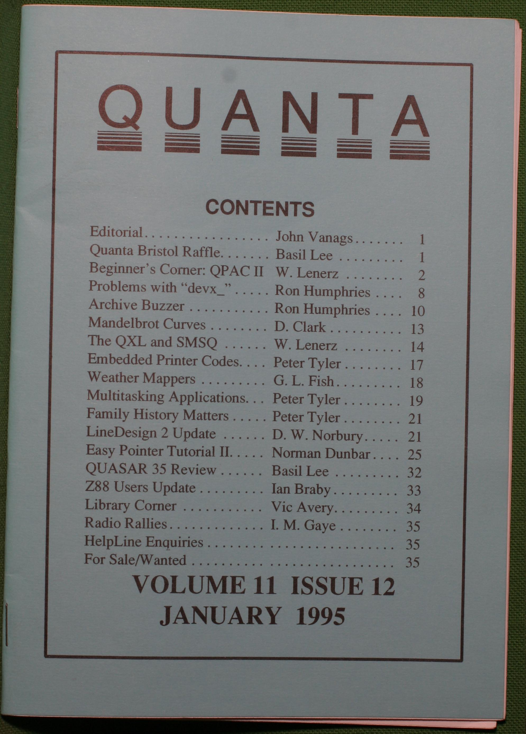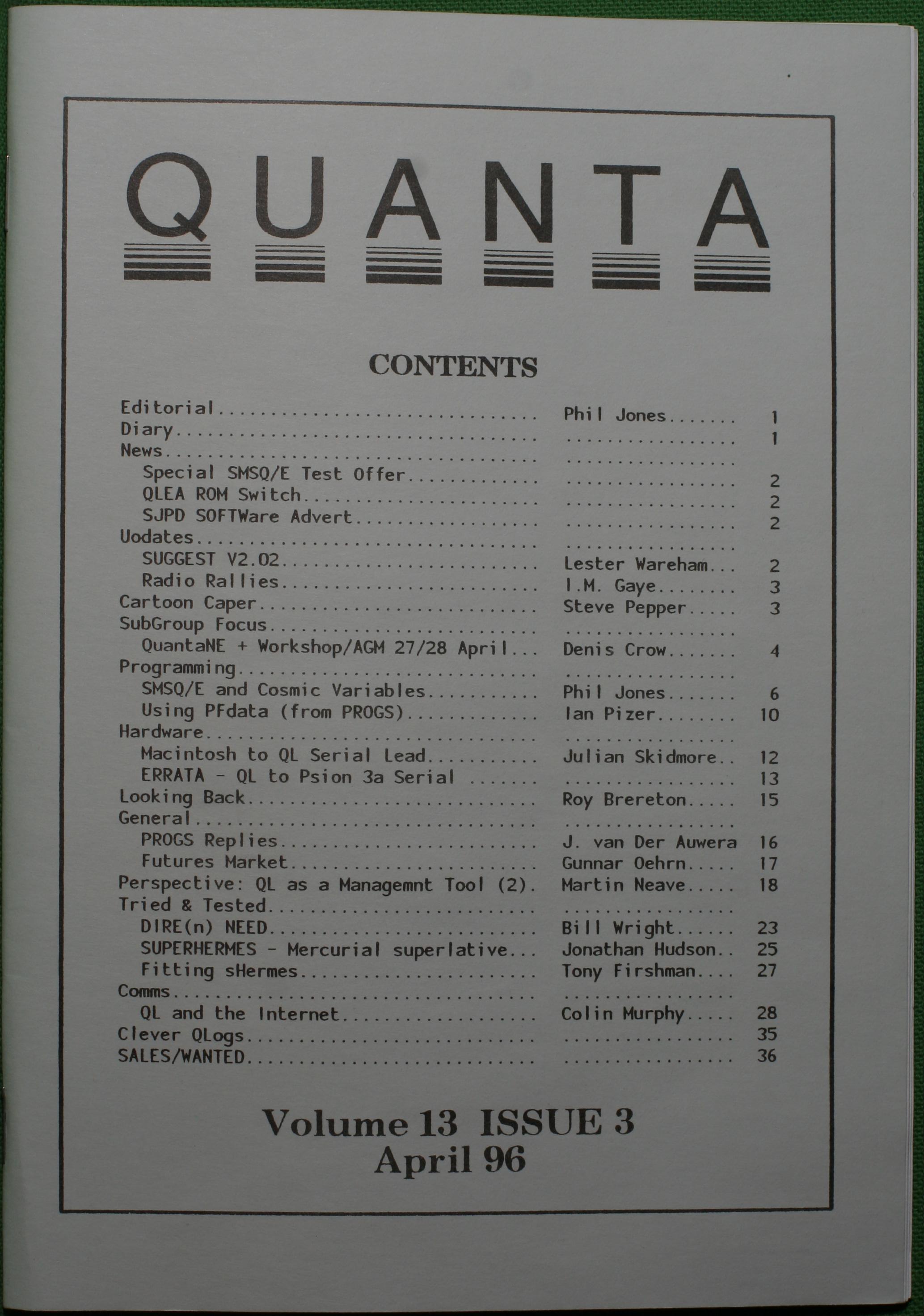 Quanta es el club de usuarios del ordenador Sinclair QL más importante del mundo. Se fundó más o menos al mismo tiempo que se comercializaba el ordenador. Tardé varios años en dicidirme en hacerme socio, pero cuando lo hice pedí todos los números atrasados de la revista. Dejé de ser socio cuando vi que mis pricipales intereses informáticos ya se habían desplazado hacia otros derroteros.