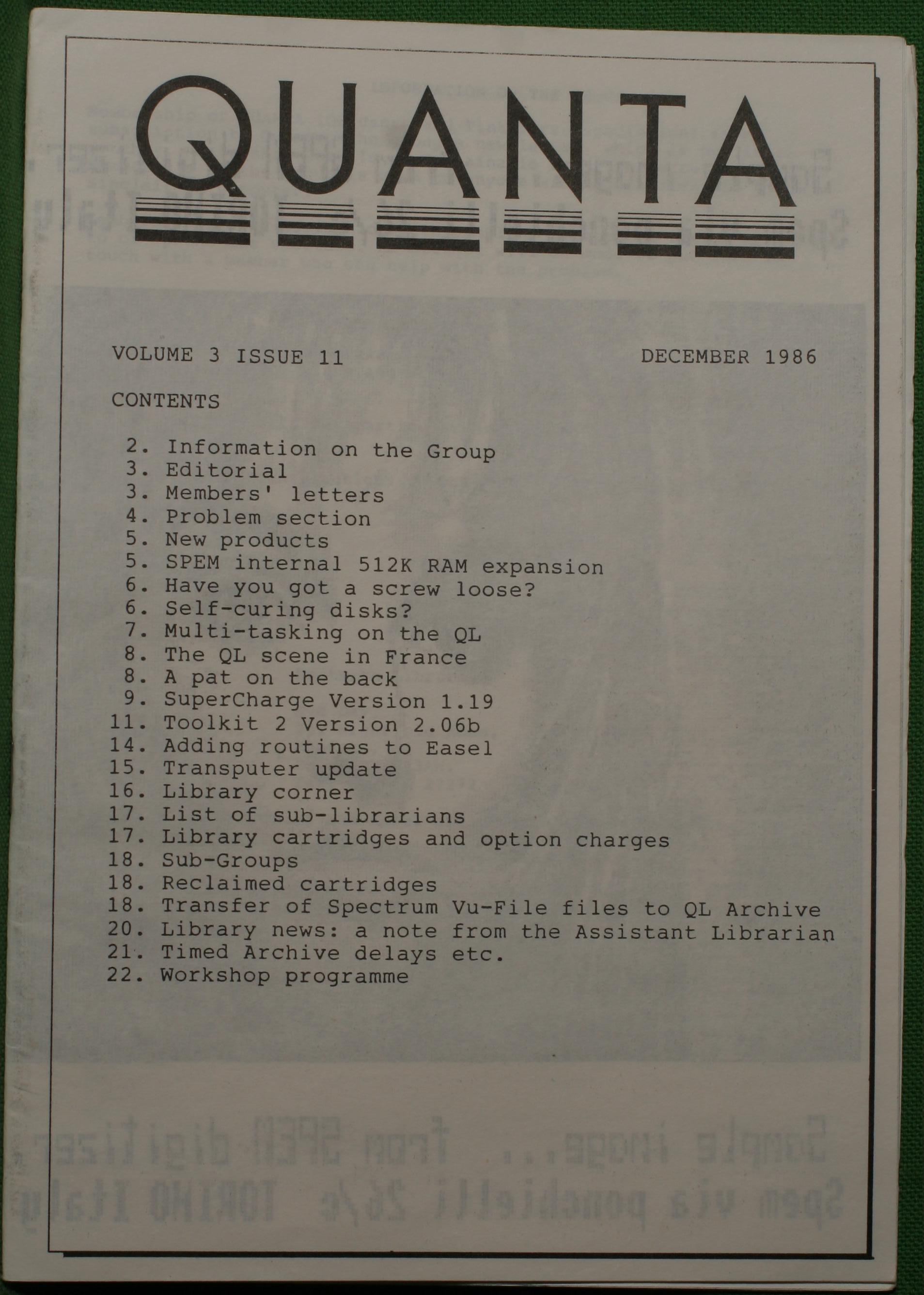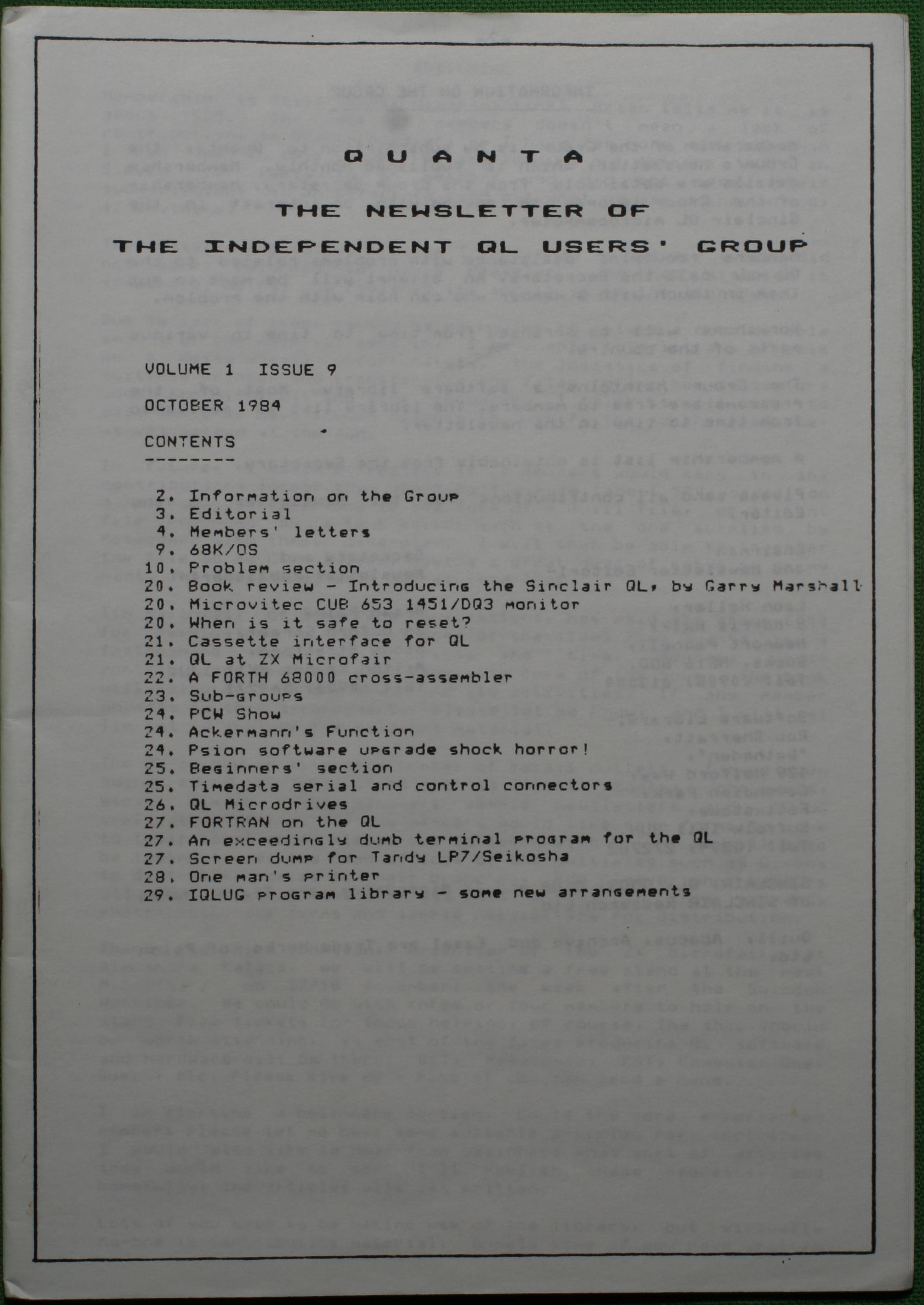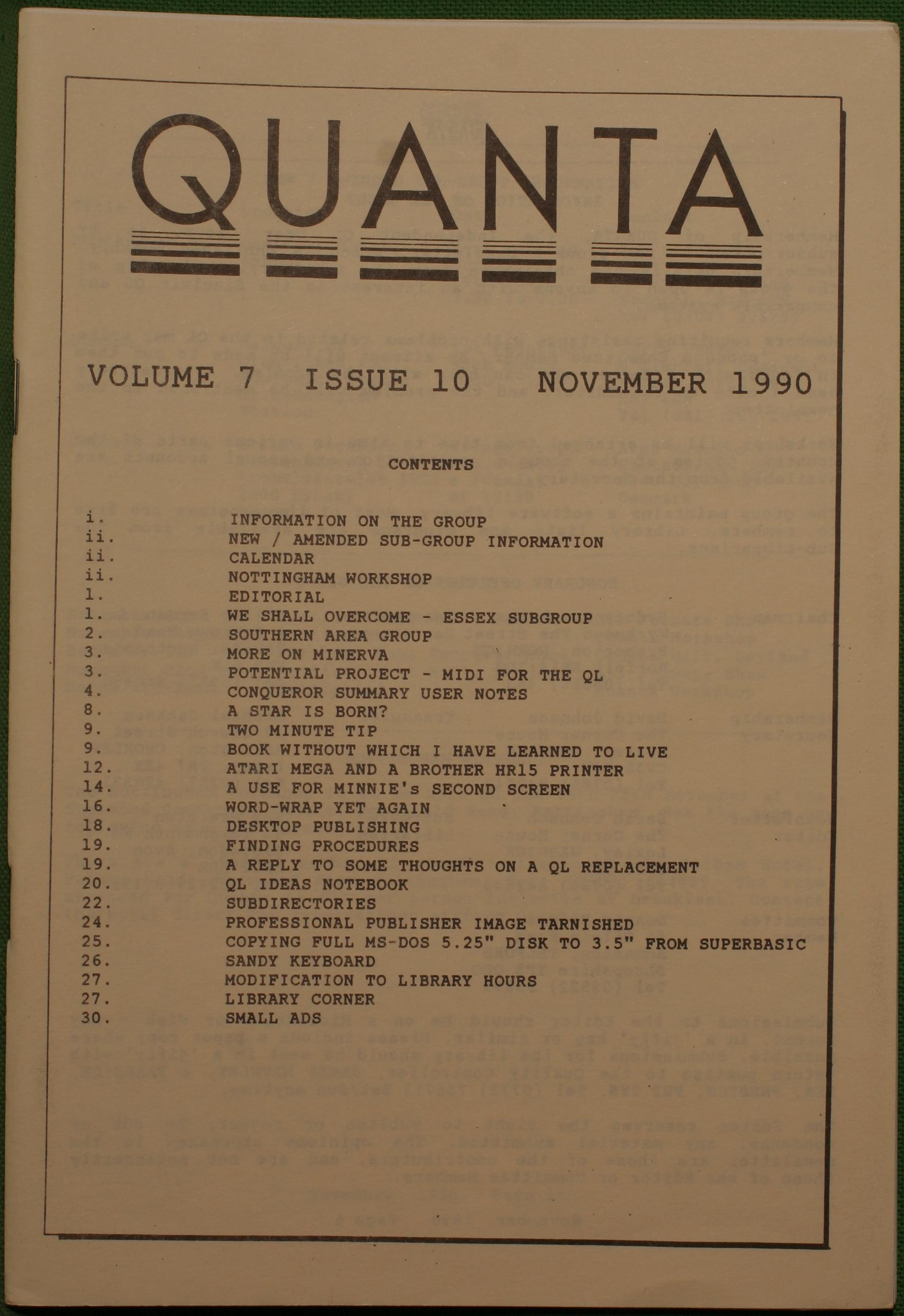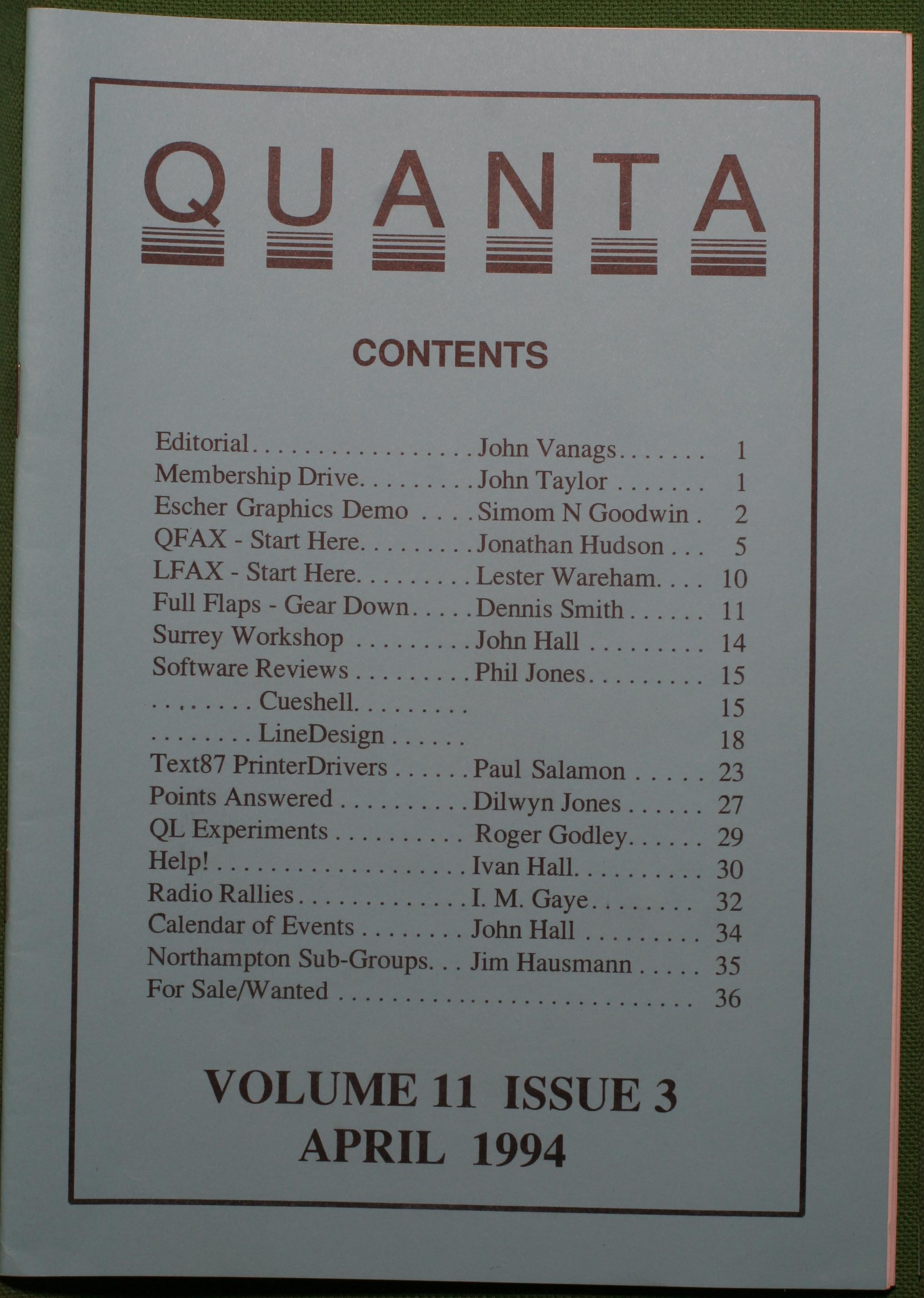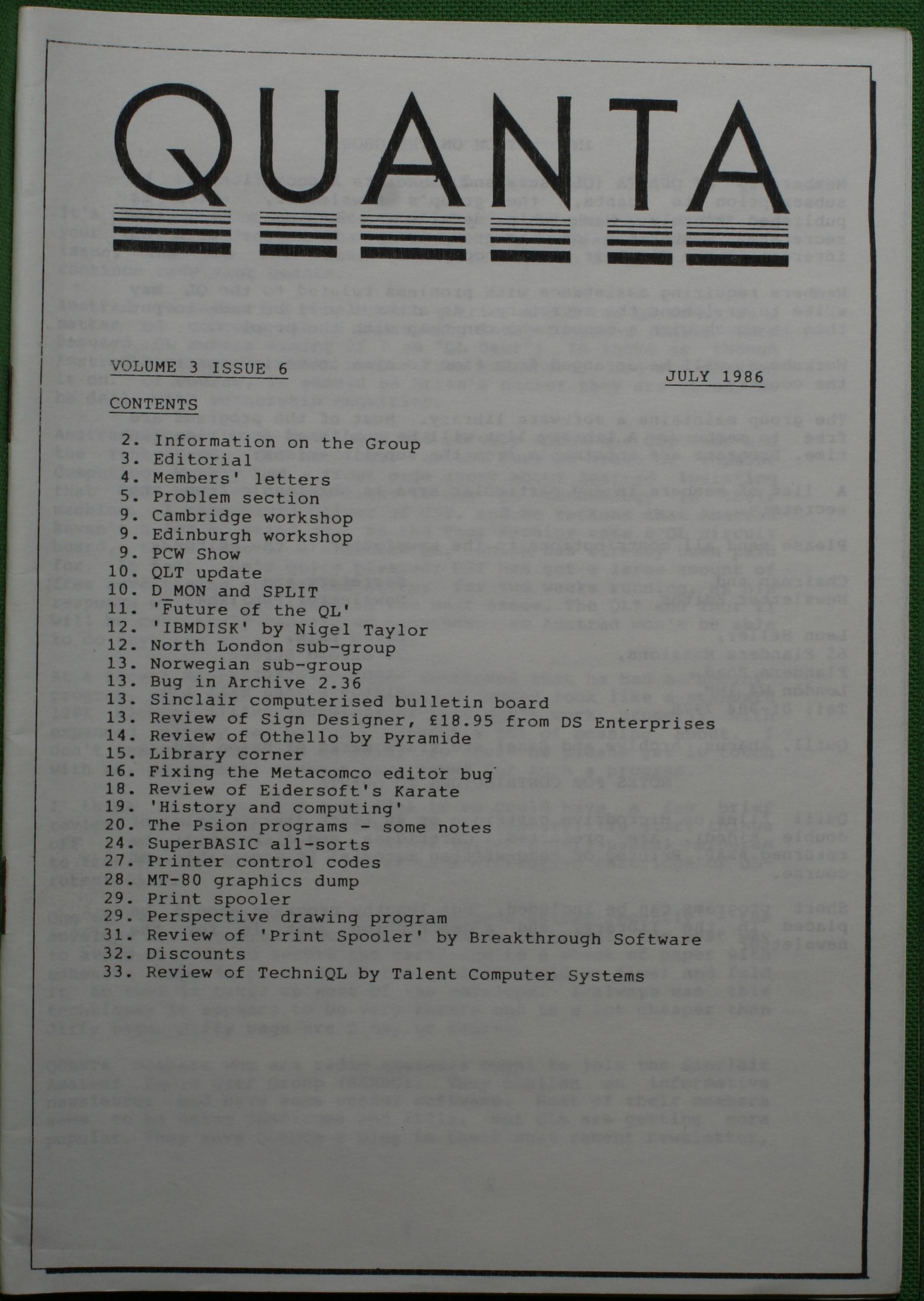 Quanta es el club de usuarios del ordenador Sinclair QL más importante del mundo. Se fundó más o menos al mismo tiempo que se comercializaba el ordenador. Tardé varios años en dicidirme en hacerme socio, pero cuando lo hice pedí todos los números atrasados de la revista. Dejé de ser socio cuando vi que mis pricipales intereses informáticos ya se habían desplazado hacia otros derroteros.