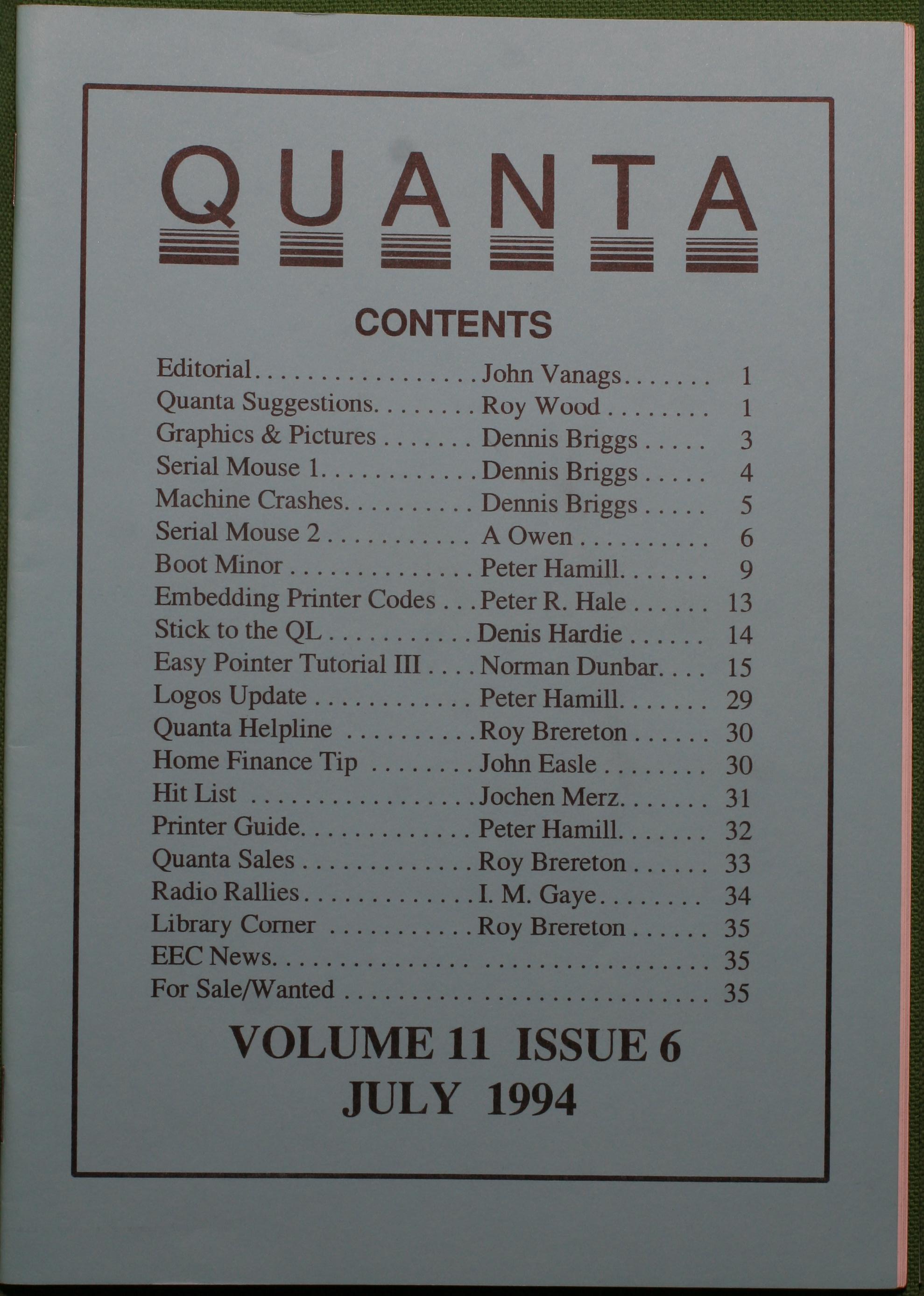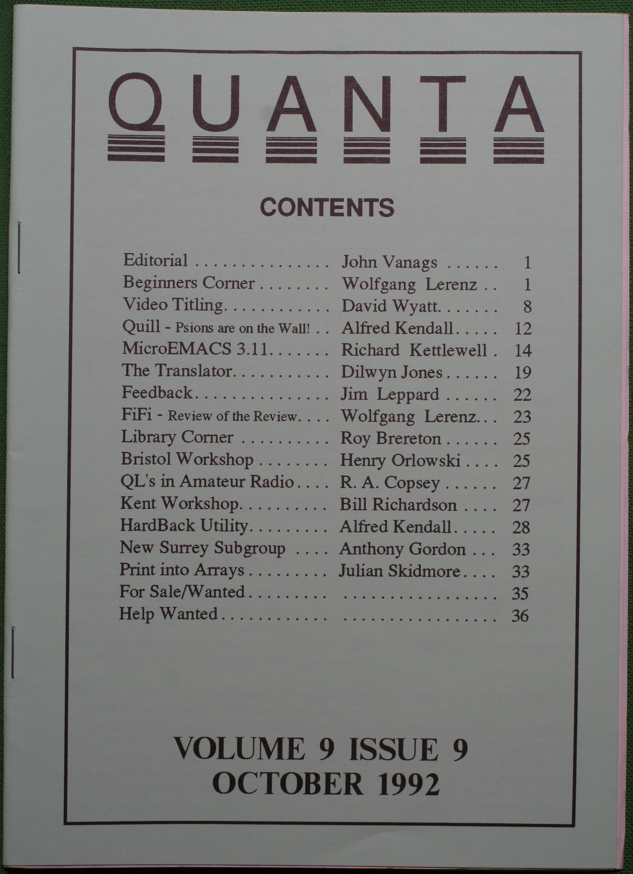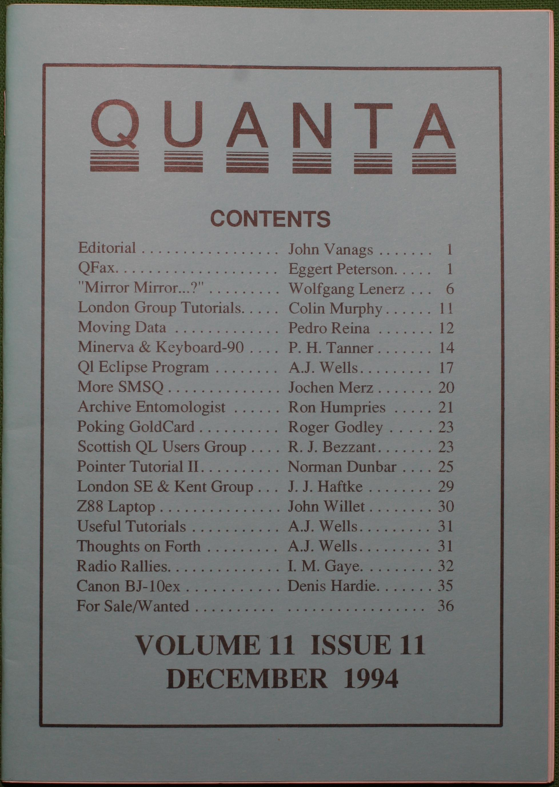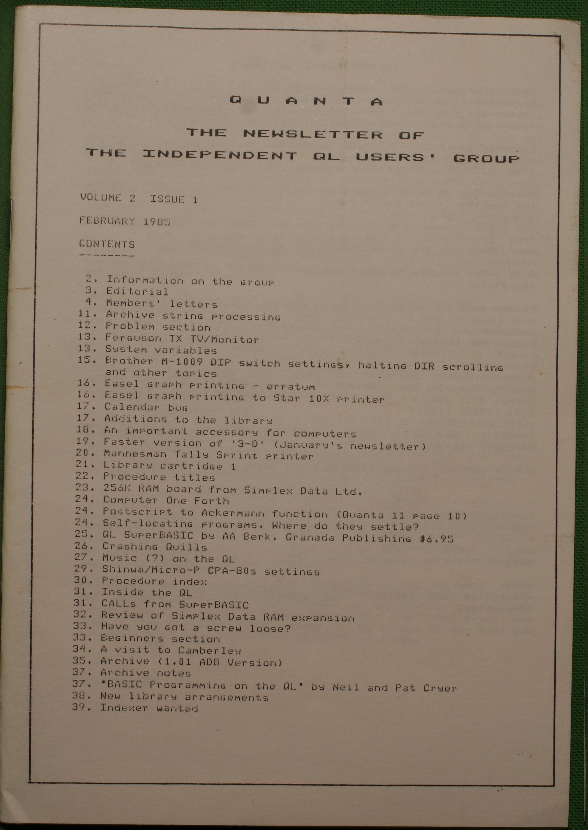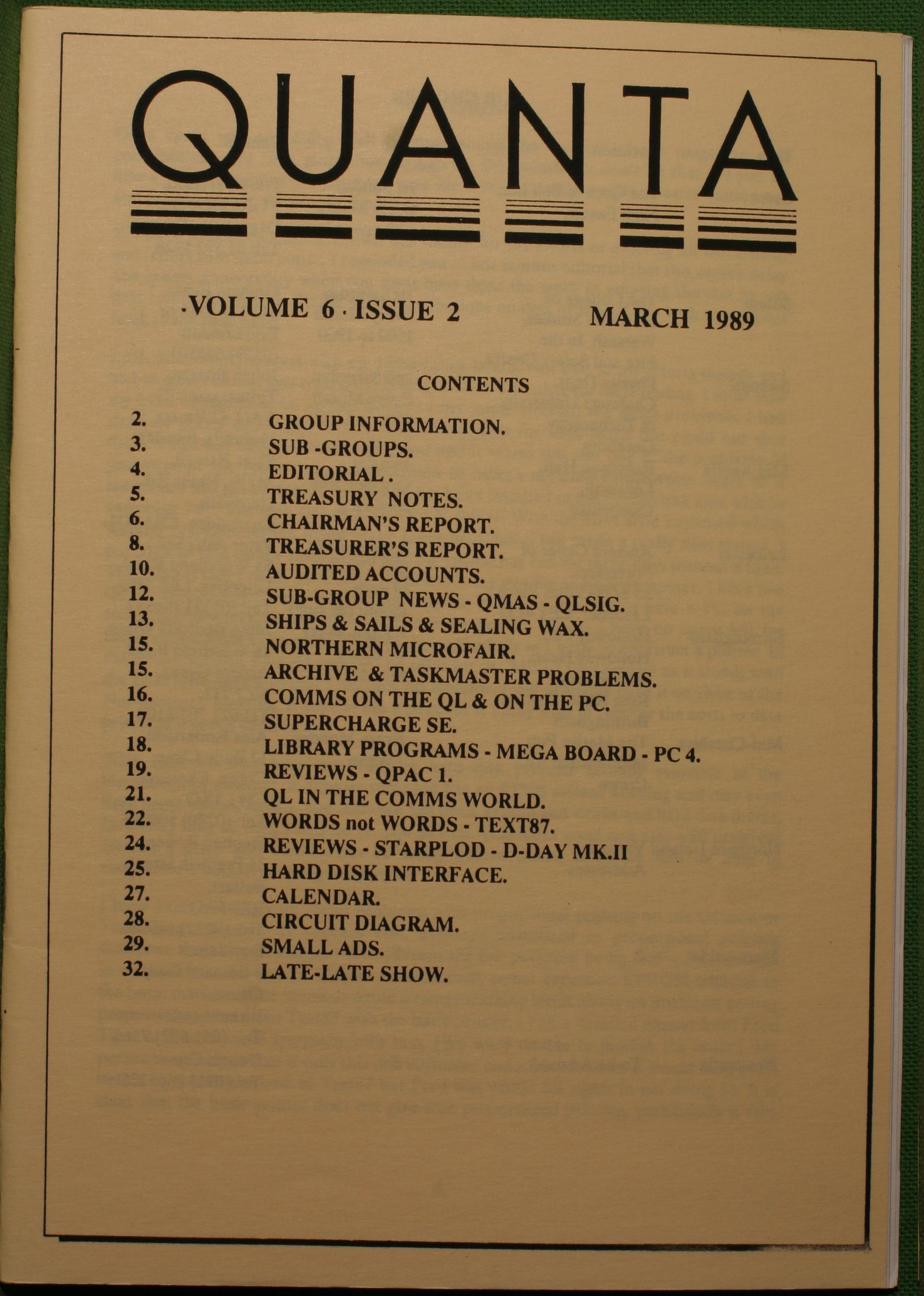 Quanta es el club de usuarios del ordenador Sinclair QL más importante del mundo. Se fundó más o menos al mismo tiempo que se comercializaba el ordenador. Tardé varios años en dicidirme en hacerme socio, pero cuando lo hice pedí todos los números atrasados de la revista. Dejé de ser socio cuando vi que mis pricipales intereses informáticos ya se habían desplazado hacia otros derroteros.