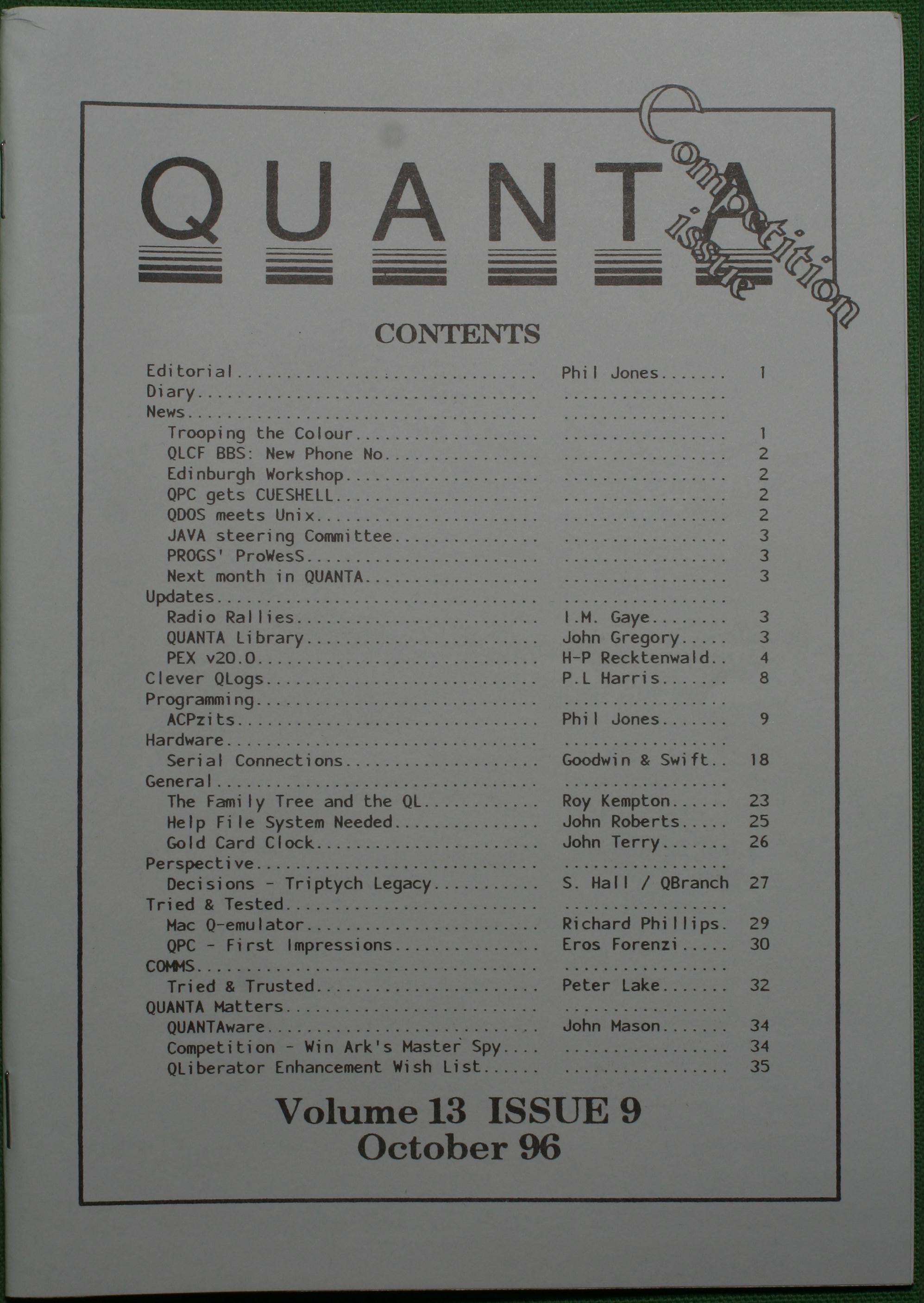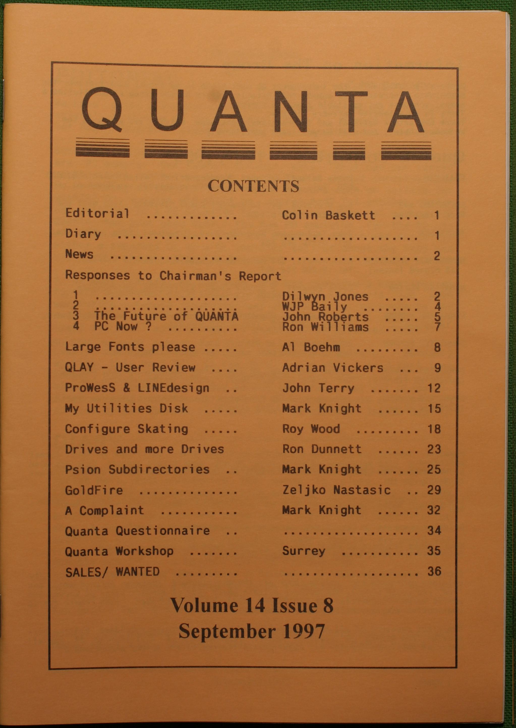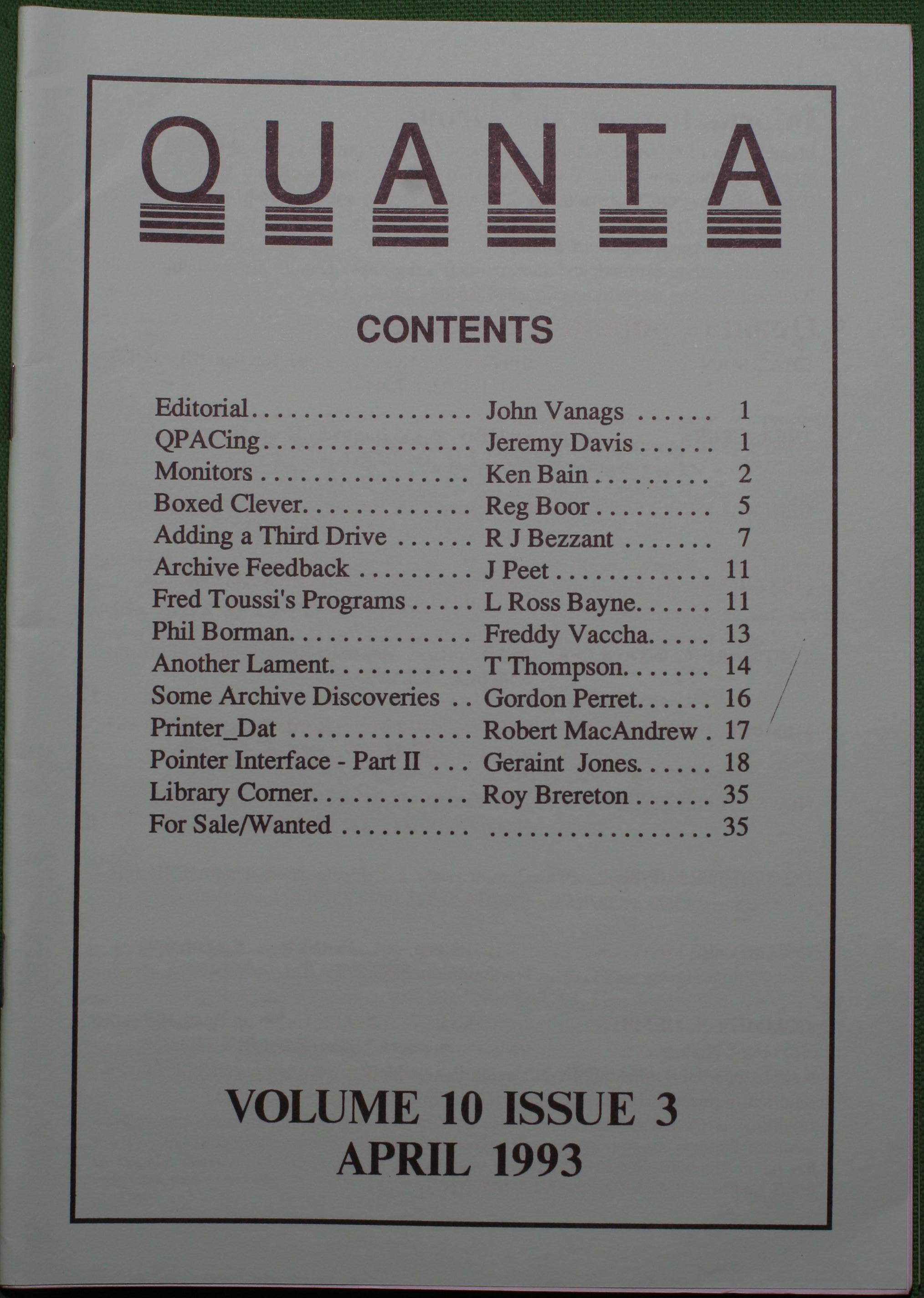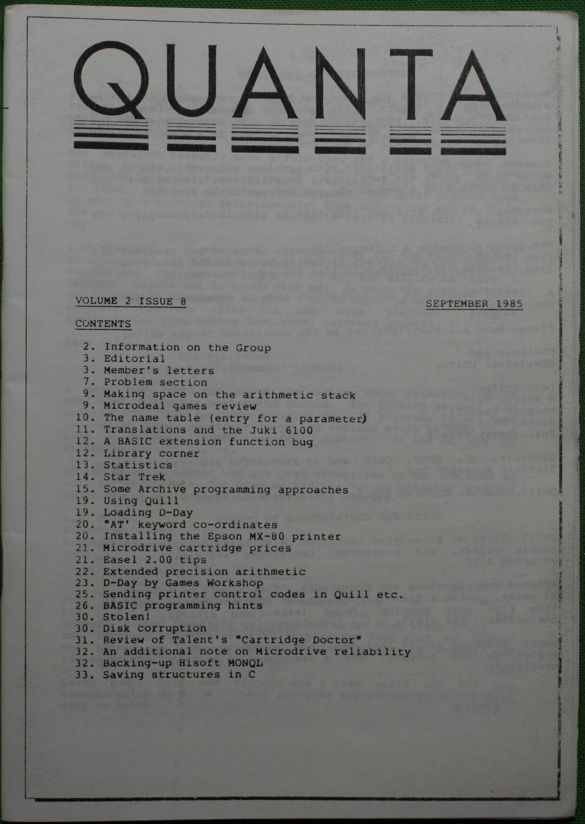 Quanta es el club de usuarios del ordenador Sinclair QL más importante del mundo. Se fundó más o menos al mismo tiempo que se comercializaba el ordenador. Tardé varios años en dicidirme en hacerme socio, pero cuando lo hice pedí todos los números atrasados de la revista. Dejé de ser socio cuando vi que mis pricipales intereses informáticos ya se habían desplazado hacia otros derroteros.