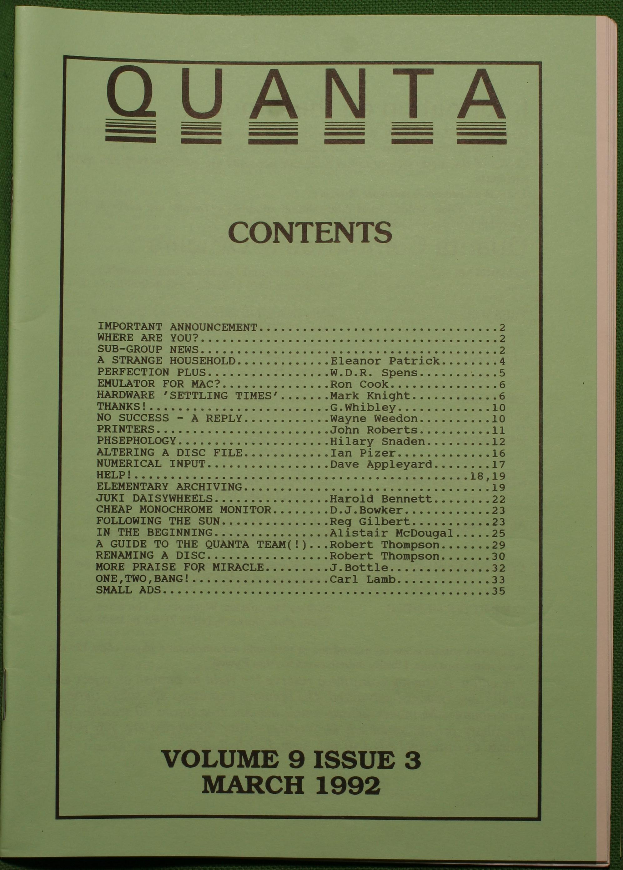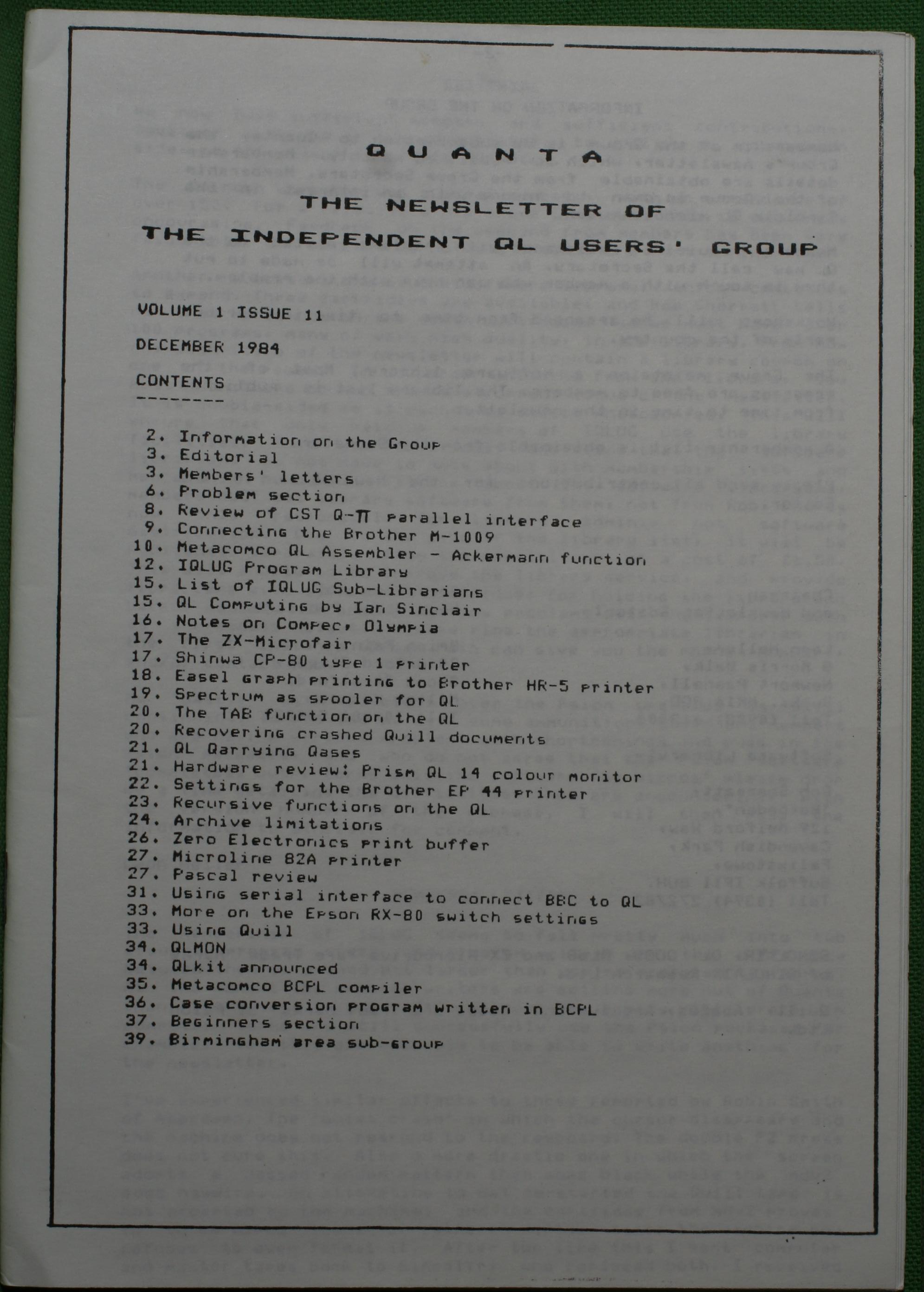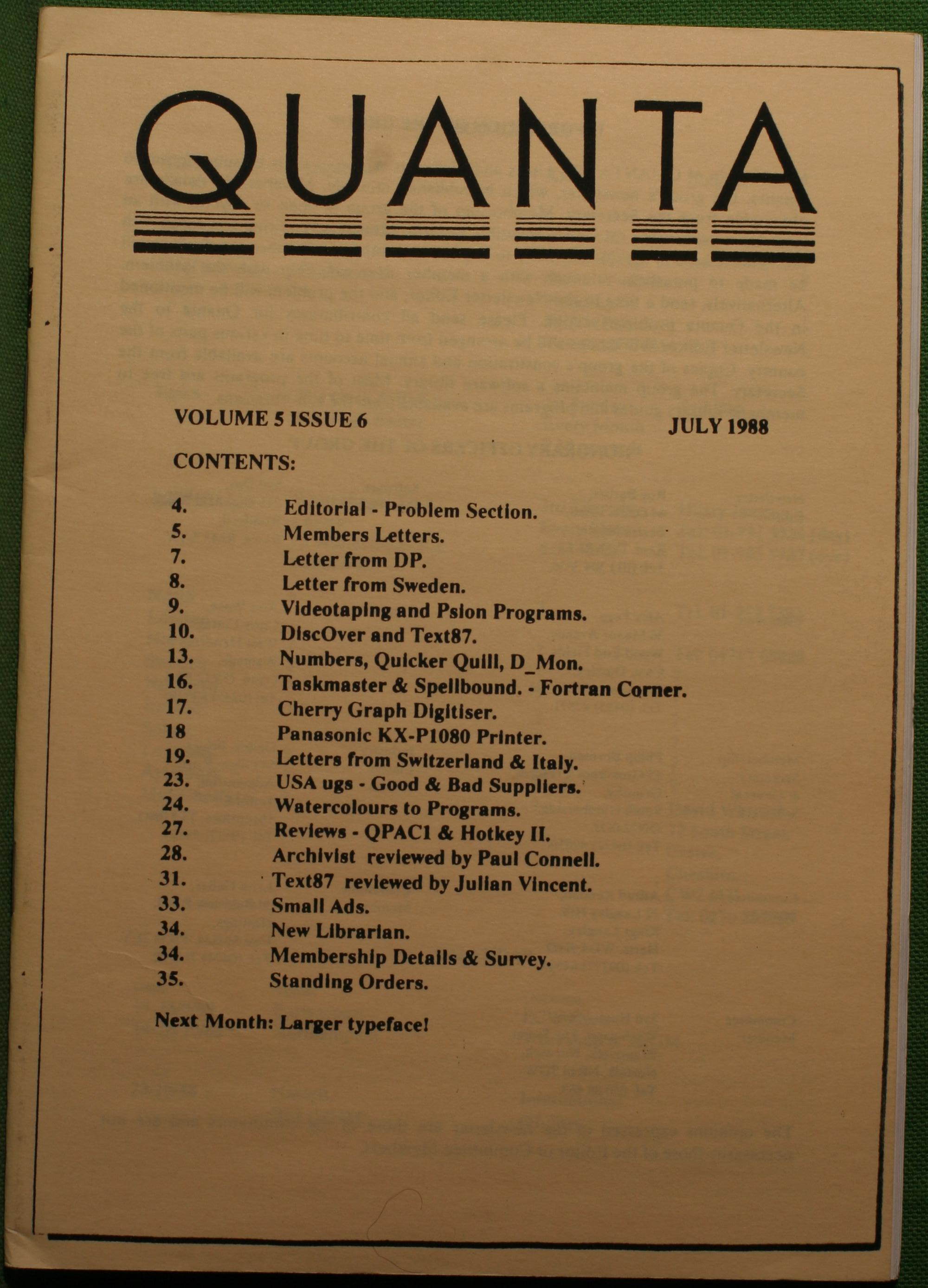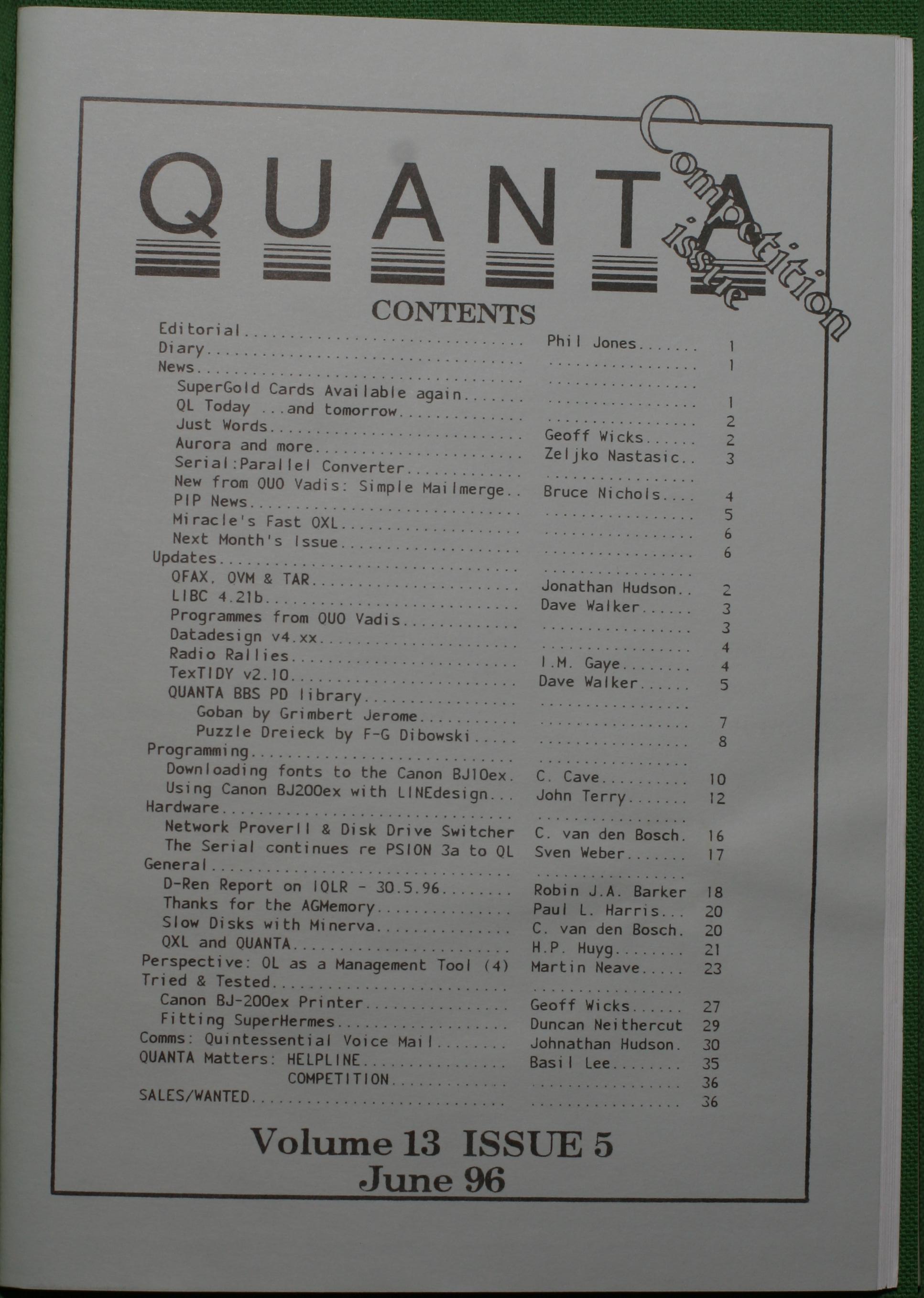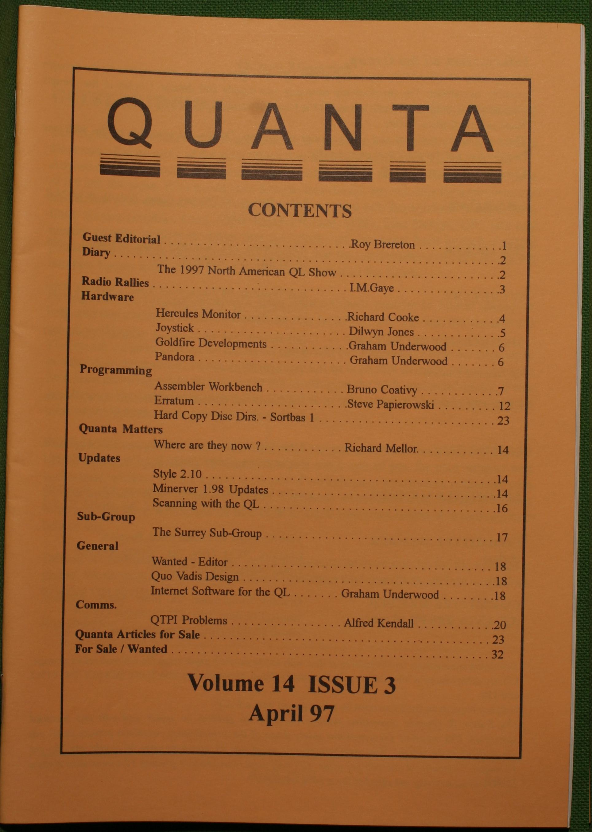 Quanta es el club de usuarios del ordenador Sinclair QL más importante del mundo. Se fundó más o menos al mismo tiempo que se comercializaba el ordenador. Tardé varios años en dicidirme en hacerme socio, pero cuando lo hice pedí todos los números atrasados de la revista. Dejé de ser socio cuando vi que mis pricipales intereses informáticos ya se habían desplazado hacia otros derroteros.